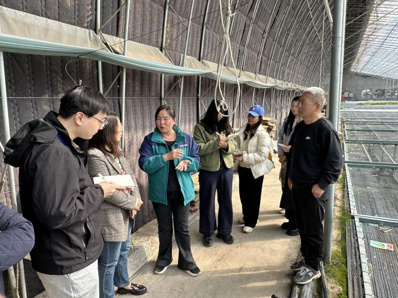 最后,团队前往野岗镇叁收育苗基地。全国劳动模范、基地负责人李玉姣带领师生们走进品种选育区、筛选试验棚,详细讲解育苗生产过程。基地绑定合作社和农户,有效联农带农,实现了经济效益与社会效益的双赢。